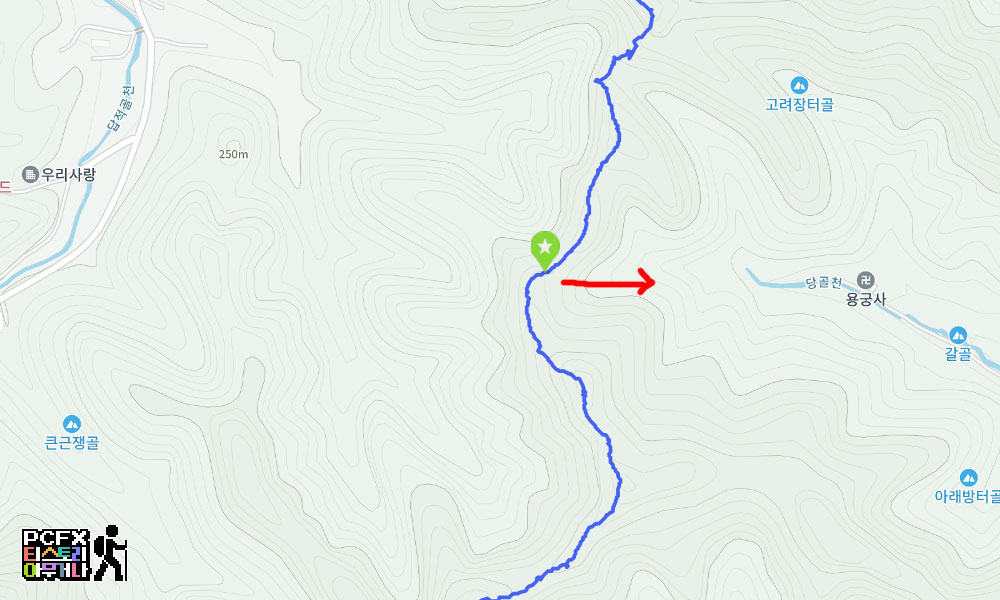 이정표는 있지만 단일방향이라 갈림길은 없다