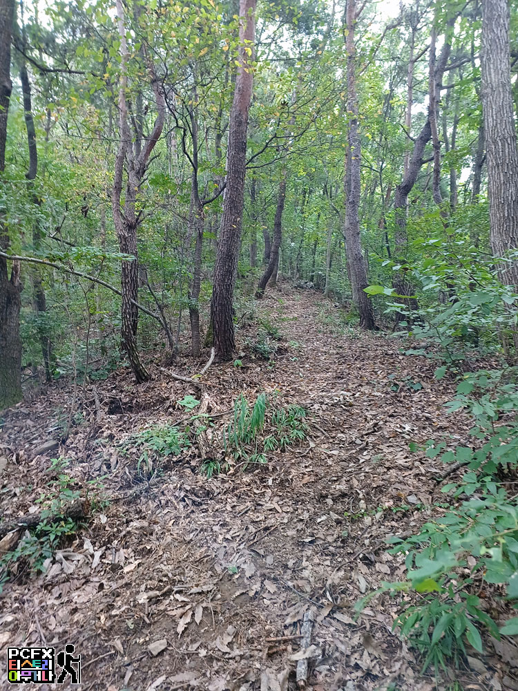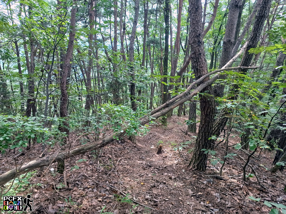 이후 한차례 나무계단 이후 완만한 흙길이 이어진다