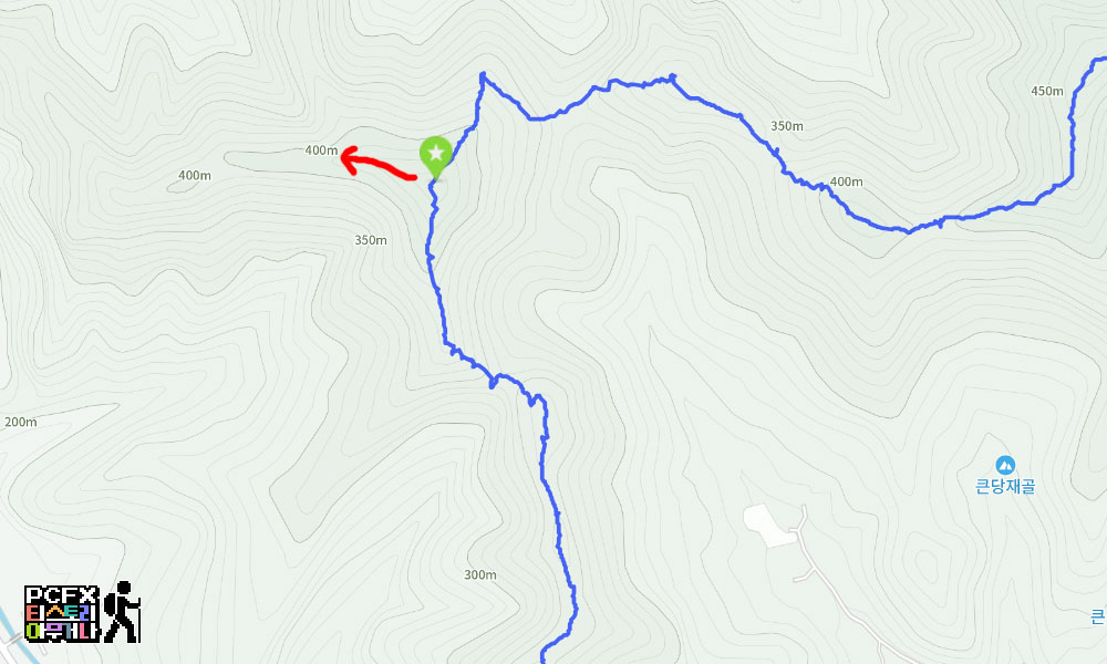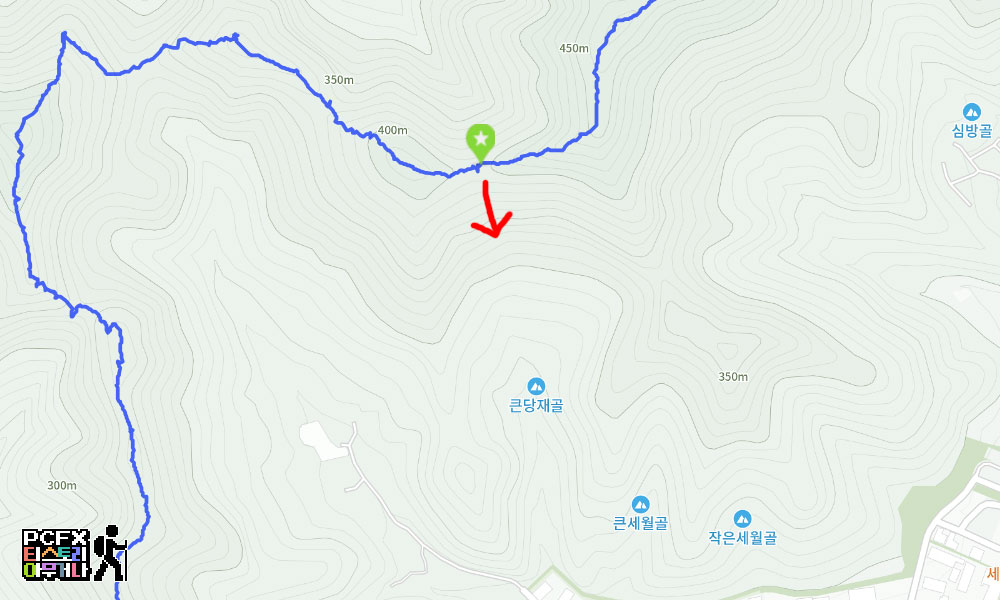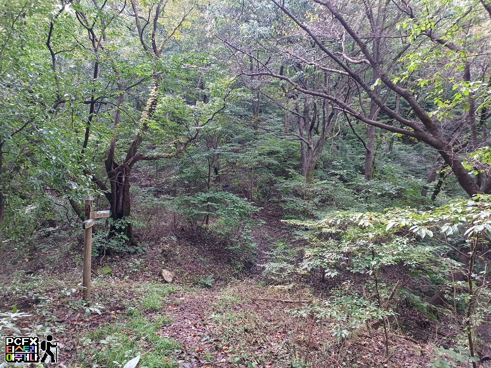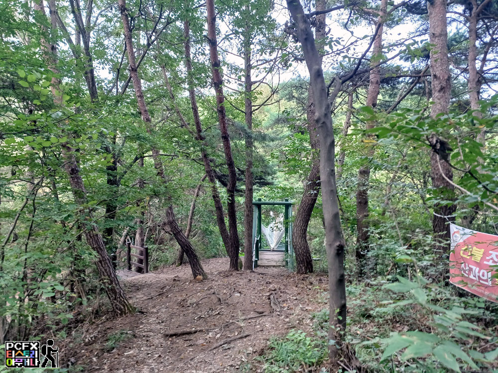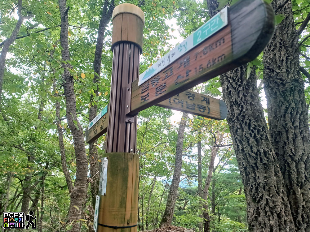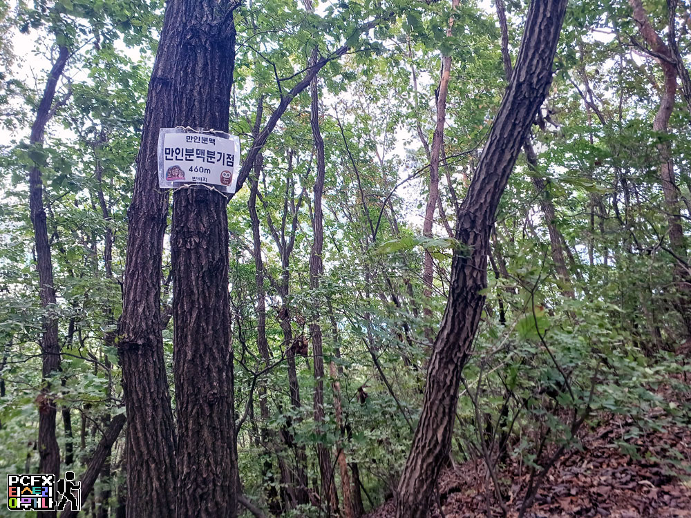 이곳을 오르면 나오는 봉우리에 대전시 경계길 갈림길이 등장한다.