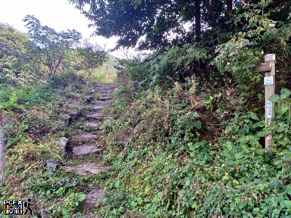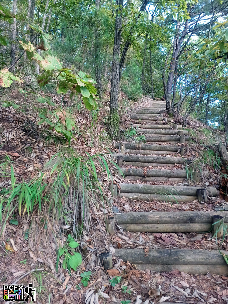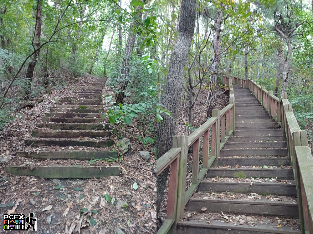 약간의 완만한 길이 이어지다가 나무계단 오르막이 나온다.